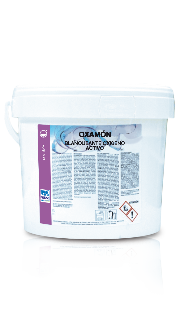 Blanqueante a base de oxigeno activo, para el lavado de ropa blanca o de color en procesos industriales.