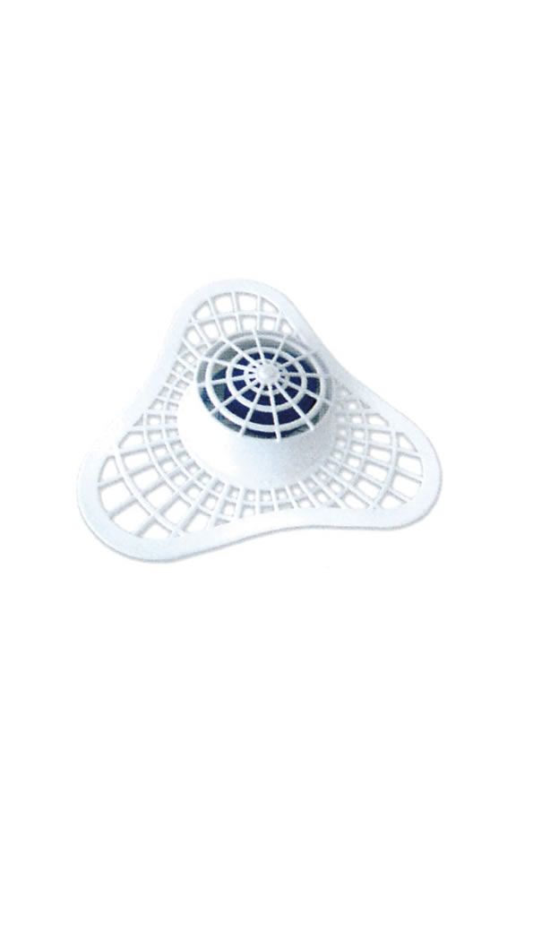 Plástico protector con pastilla biológica diseñado para prevenir obstrucciones en el urinario. Contiene Vijublock azul.
